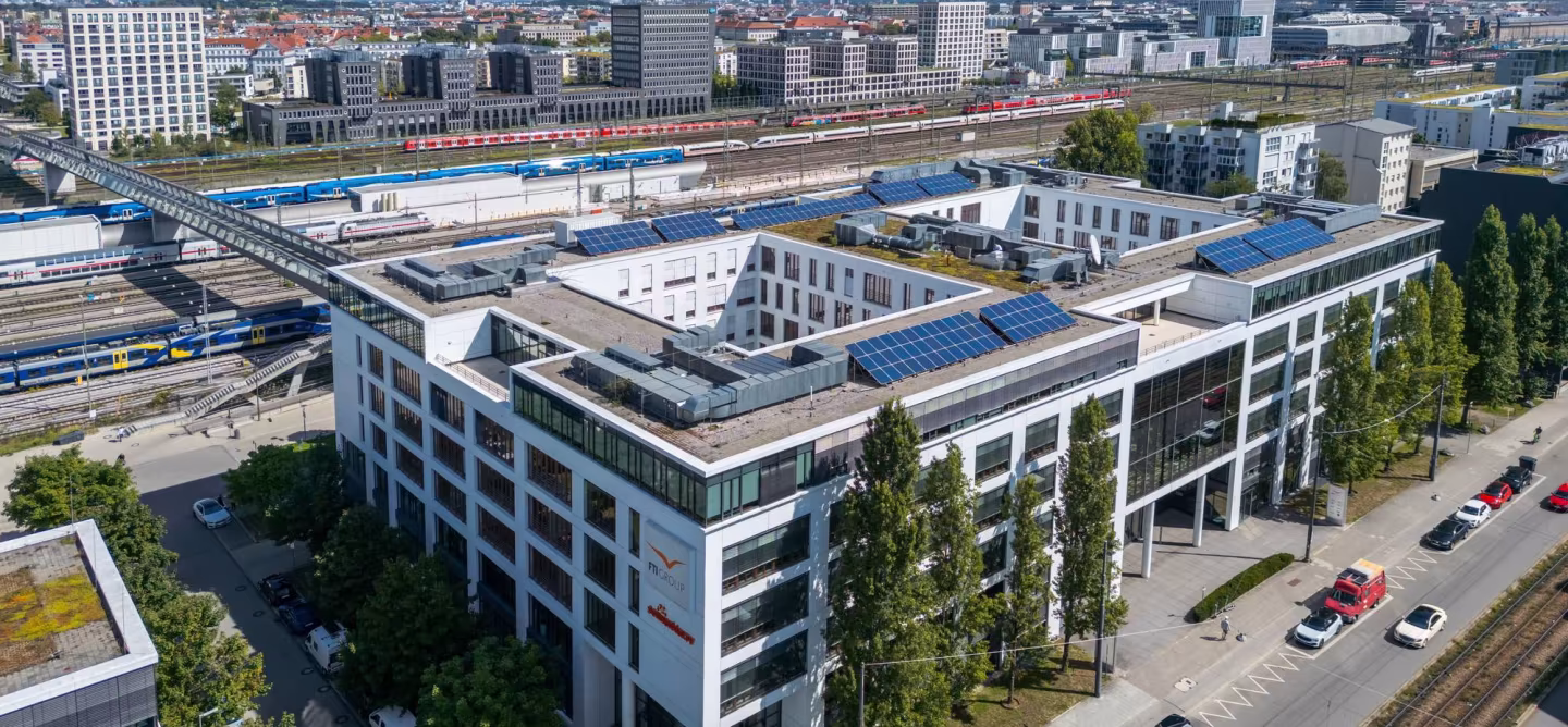 Die sechsgeschossige, repräsentative Büroimmobilie aus dem Jahr 2010 bietet insgesamt rund 23.000 qm vermietbare Fläche und punktet unter anderem durch eine Kantine und vier Dachterrassen mit schönem Ausblick im fünften Obergeschoss. Das Objekt liegt an der S-Bahn-Stammstrecke München, der zentralen West-Ost-Verbindung der Stadt, wobei die S-Bahn-Haltestelle Donnersbergerbrücke direkt über einen Fußgängersteg erreichbar ist.